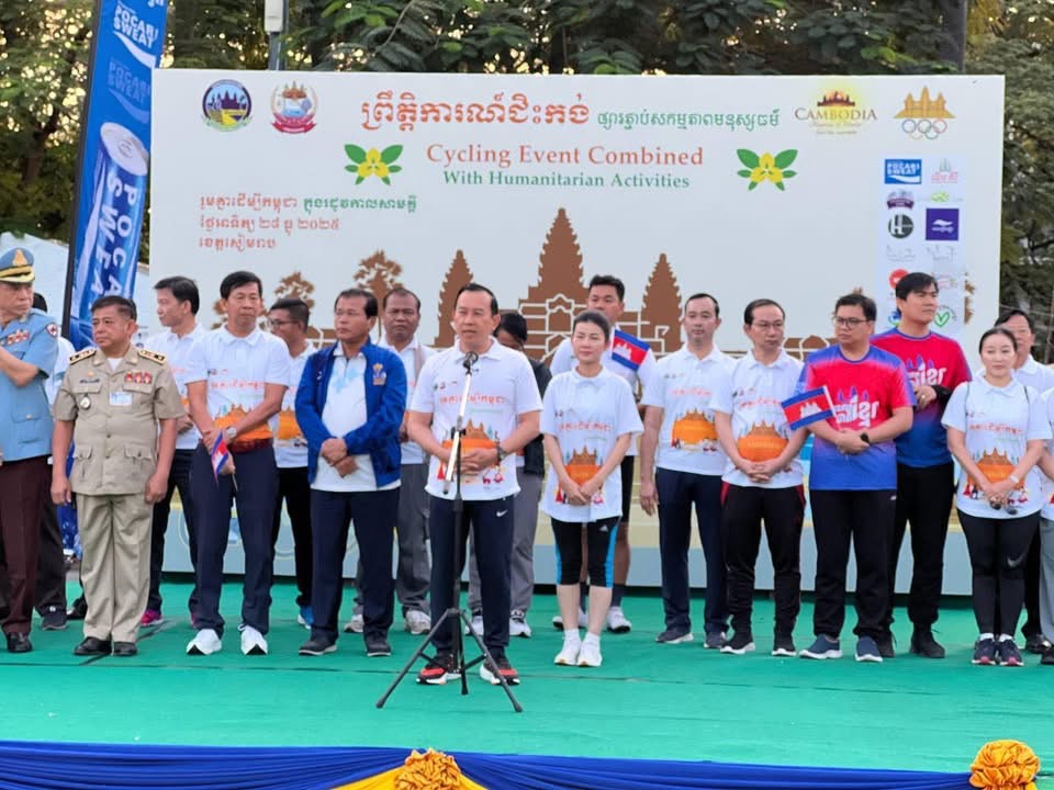 ខេត្តសៀមរាប៖ ក្រសួងទេសចរណ៍ សហការជាមួយរដ្ឋបាលខេត្តសៀមរាប បានរៀបចំព្រឹត្តិការណ៍ជិះកង់ផ្សារភ្ជាប់នឹងសកម្មភាពមនុស្សធម៌ ក្រោមប្រធានបទ « រួមគ្នាដើម្បីកម្ពុជា ក្នុងរដូវកាលសាមគ្គី» បានទាក់ទាញបងប្អូនប្រជាពលរដ្ឋ ទេសចរជាតិ និងអន្តរជាតិប្រមាណ២ពាន់នាក់ មកចូលរួមដើម្បីបង្ហាញអបអសាទរទិវាសន្តិភាពកម្ពុជា និង លើកស្ទួយវិស័យទេសចរណ៍ កាលពីព្រឹកថ្ងៃទី២៨ ខែធ្នូ ឆ្នាំ២០២៥ លើទឹកដីប្រវត្តិសាស្ត្រសៀមរាប.អង្គរ។