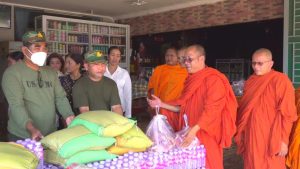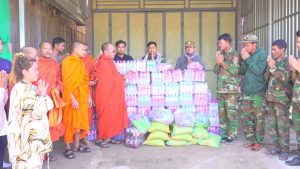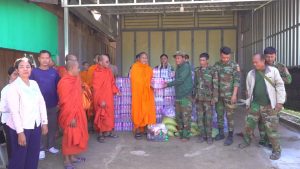 សៀមរាប៖ ព្រះសង្ឃនិងសប្បុរសជនក្នុងក្រុងខេត្តសៀមរាបដឹកនាំដោយព្រះយសោធរញាណ ឡោម សុឈាត ព្រះរាជាគណកិត្តិយស និង ជាព្រះគ្រូចៅអធិការវត្តព្រះសិអារ្យ កាលពីថ្ងៃអាទិត្យទី២៩ ខែធ្នូ ឆ្នាំ២០២៥នេះ បាននិមន្តចុះសួរសុខទុក្ខ និងនាំយកគ្រឿងឧបភោគបរិភោគរួមជាមួយនិងបច្ច័យមួយចំនួនដែលបានមកពីចៅអធិការវត្តនិងសប្បុរសជនជិតឆ្ងាយមួយចំនួន នៅក្នុងក្រុងសៀមរាប សម្រាប់ចែកជូនកងទ័ព ដែលកំពុងឈរជើងការពារខ្សែបន្ទាត់ព្រំដែន ក្នុងខេត្តព្រះវិហារ។