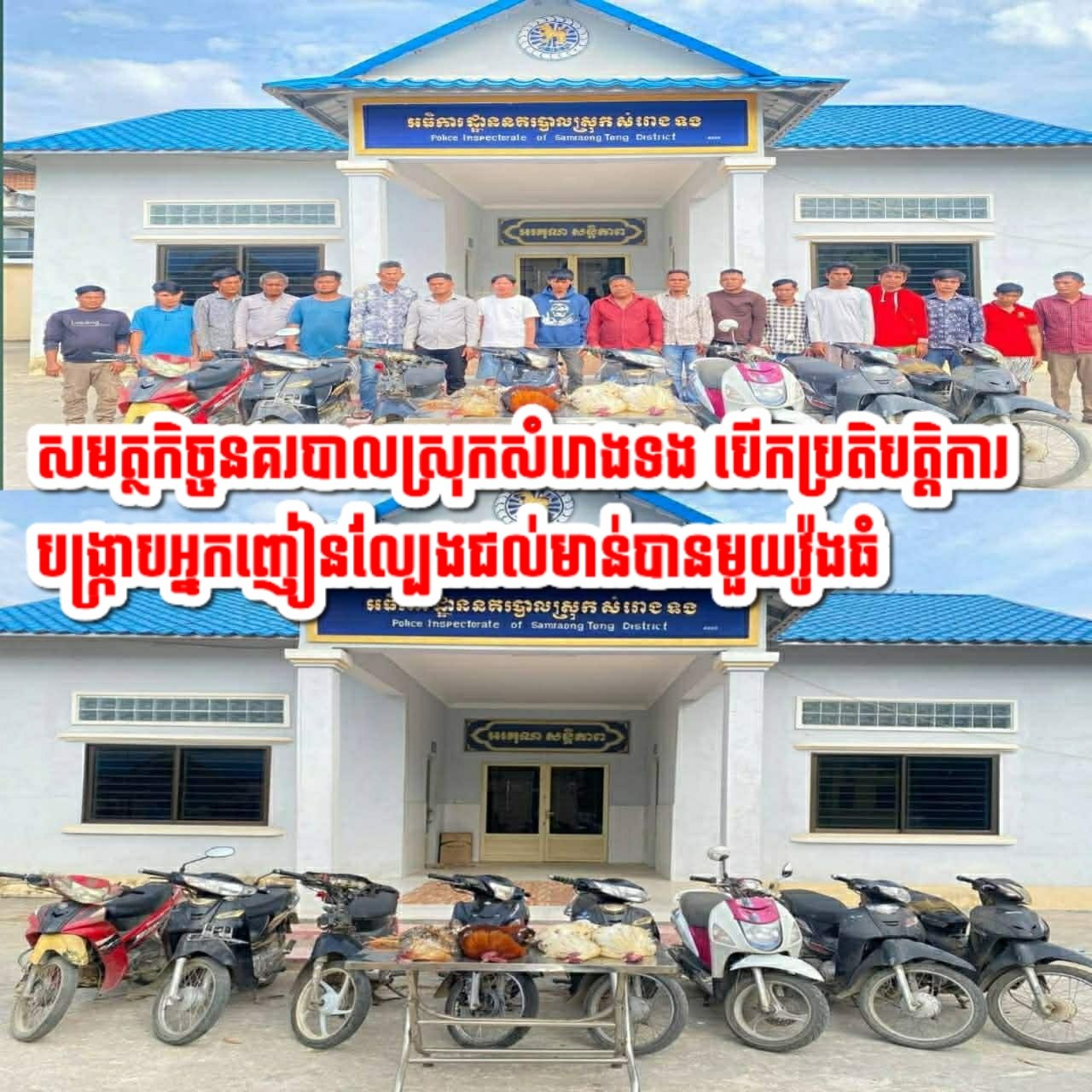 ចំណែក១៨នាក់ផ្សេងទៀត បានឃាត់បញ្ជូនមកអធិការដ្ឋាននគរបាលស្រុកសំរោងទងដេីម្បីបំពេញនីតិវិធី ។