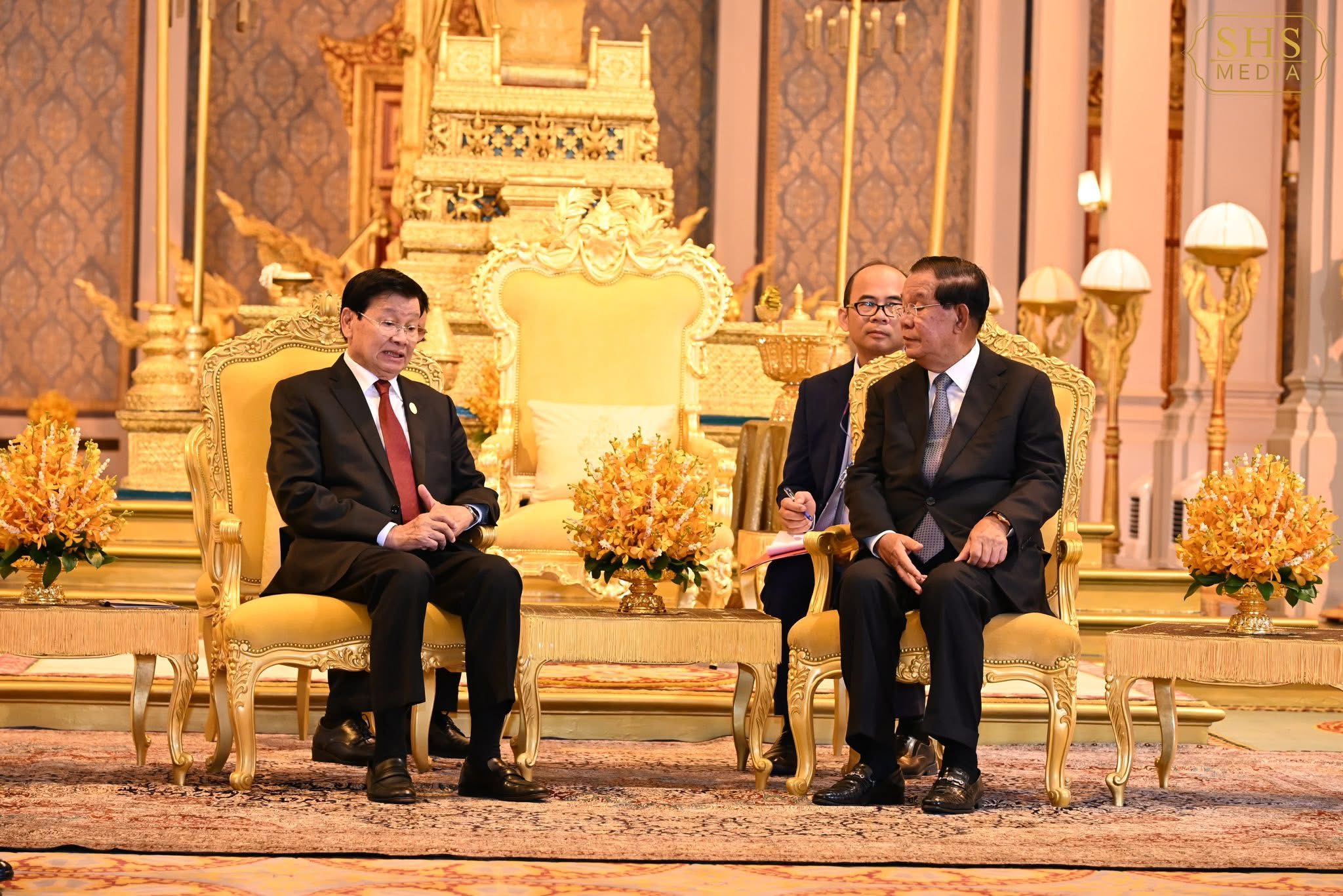 ព្រះបរមរាជវាំង នាព្រឹកថ្ងៃសៅរ៍ ៥រោច ខែមាឃ ឆ្នាំម្សាញ់ សប្តស័ក ពុទ្ធសករាជ ២៥៦៩ ត្រូវនឹងថ្ងៃទី៧ ខែកុម្ភៈ ឆ្នាំ២០២៦នេះសម្ដេចអគ្គមហាសេនាបតីតេជោ ហ៊ុន សែន ប្រធានព្រឹទ្ធសភានៃព្រះរាជាណាចក្រកម្ពុជា និងជាប្រធានគណបក្សប្រជាជនកម្ពុជាបានអញ្ជើញជាព្រះរាជតំណាងដ៏ខ្ពង់ខ្ពស់បំផុត របស់ព្រះករុណាព្រះបាទសម្ដេចព្រះបរមនាថ នរោត្តម សីហមុនី ព្រះមហាក្សត្រនៃព្រះរាជាណាចក្រកម្ពុជា ទទួលបដិសណ្ឋារកិច្ចស្វាគមន៍ ឯកឧត្តម ថងលុន ស៊ីសុលីត(Thongloun Sisoulith) អគ្គលេខាធិការបក្សប្រជាជនបដិវត្តន៍ឡាវ និងជាប្រធានរដ្ឋឡាវ ក្នុងឱកាសដែល ឯកឧត្តម និងគណៈប្រតិភូអញ្ជើញបំពេញទស្សនកិច្ចផ្លូវរដ្ឋនៅកម្ពុជារយៈពេលពីរថ្ងៃ។