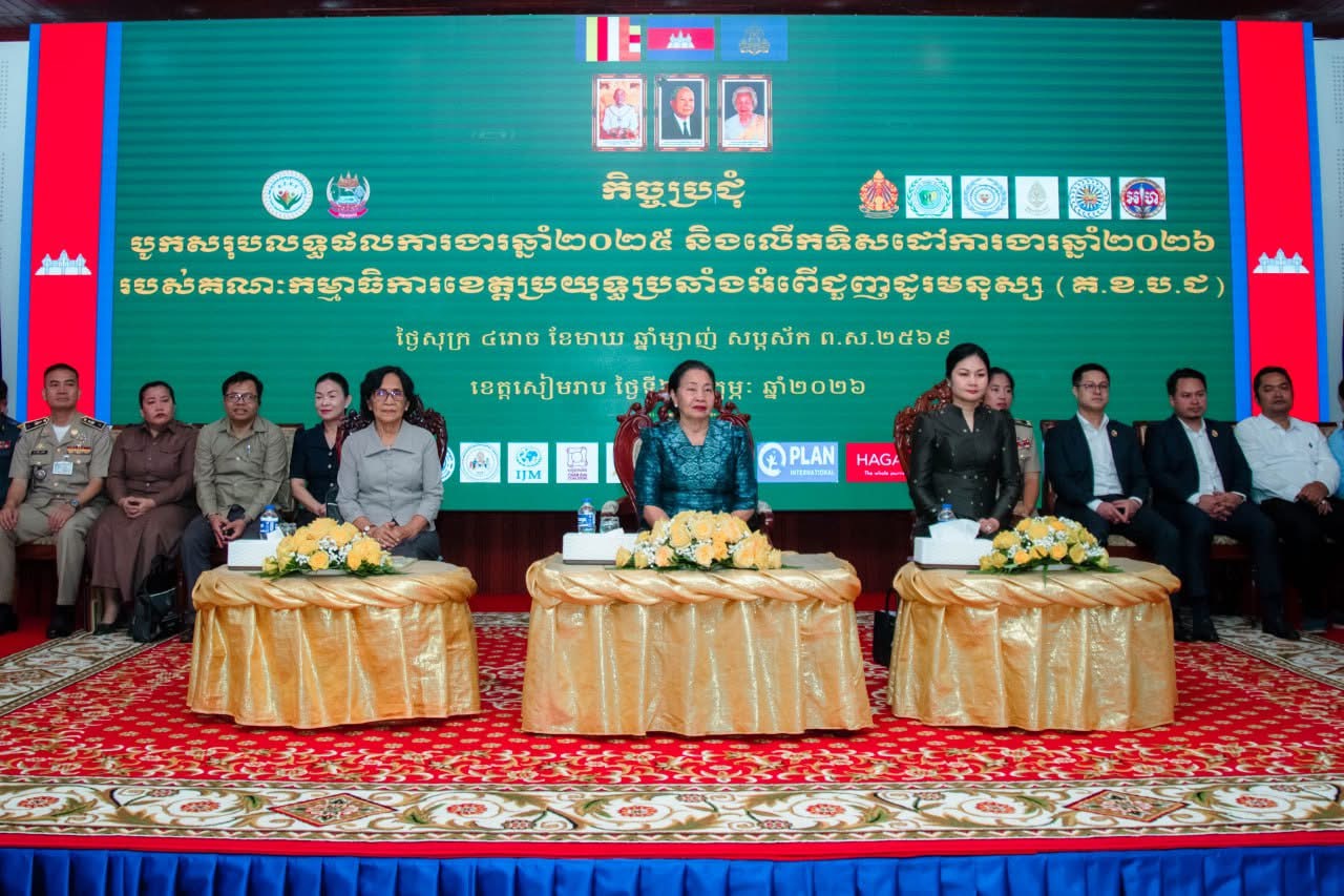 ក្នុងកិច្ចប្រជុំបូកសរុបលទ្ធផលការងារឆ្នាំ២០២៥ និងលើកទិសដៅបន្តឆ្នាំ២០២៦ របស់គណៈកម្មាធិការប្រយុទ្ធប្រឆាំងអំពើជួញដូរមនុស្សខេត្តសៀមរាប (គ.ខ.ប.ជ) កាលពីថ្ងៃទី៦ ខែកុម្ភៈ ឆ្នាំ២០២៦ លោកជំទាវ ជូ ប៊ុនអេង រដ្ឋលេខាធិការ
